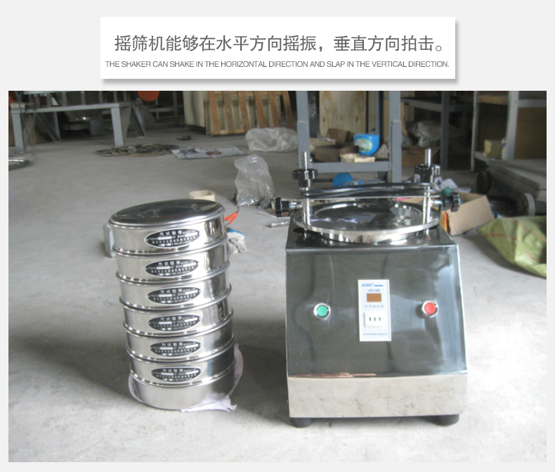 3、搖篩機(jī),規(guī)范規(guī)定搖篩機(jī)能夠在水平方向搖振,垂直方向拍擊。搖振次數(shù)為100~200次/分鐘,拍擊次數(shù)為50~70次/分鐘;